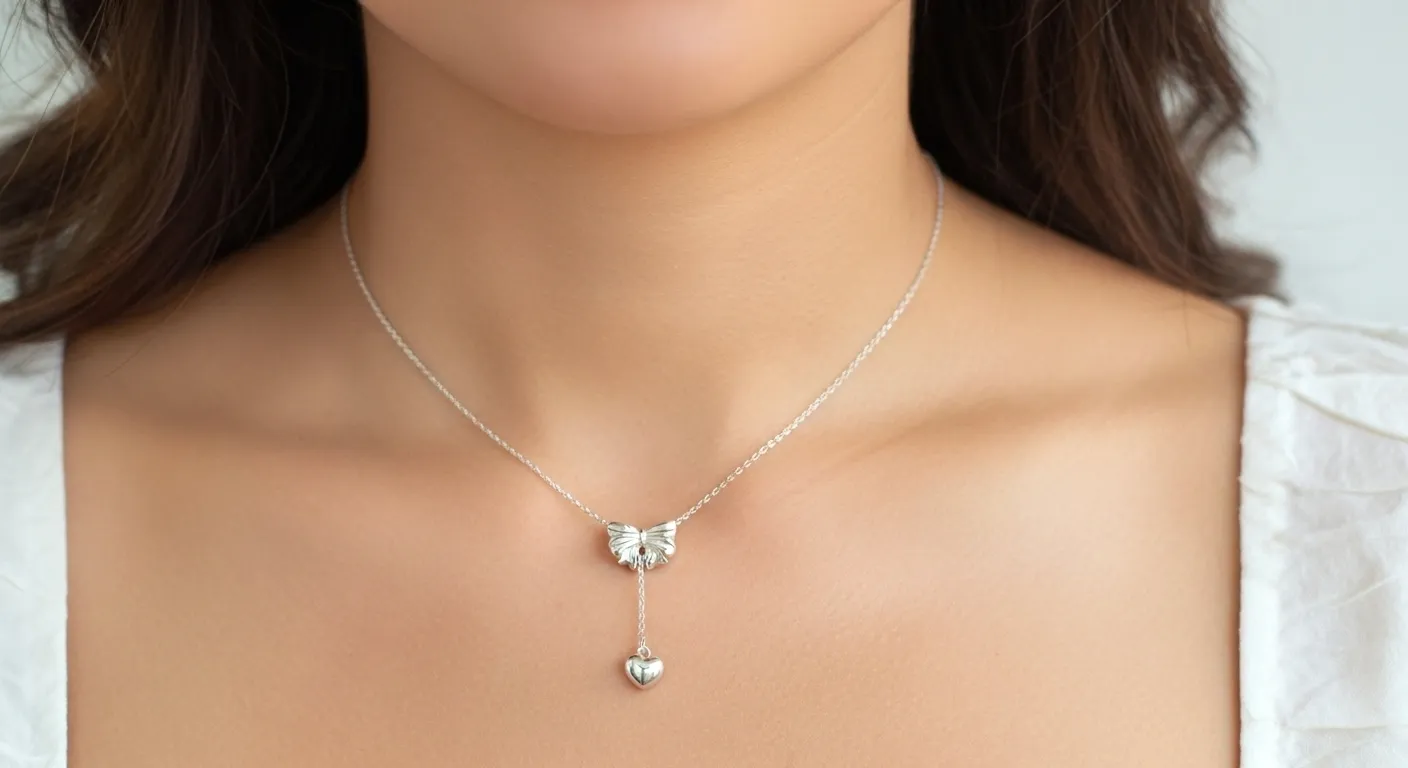 Heart Pendant Necklace – Romantic Elegance with a Dainty Bow Charm